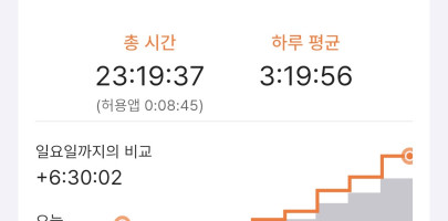총 시간 늘려보기 실패.. 이번 주는 꼭!! 더더욱 열공해보겠습니다 (ToT)