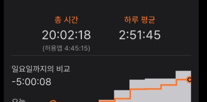 저번주에 20시간 넘기기를 목표로 했는데 목표를 달성해서 뿌듯하다!! 다음주에도 20시간 넘기기 도전~!!