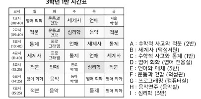 선택 과목이라서 이동 수업이 많다. 그래서 쉽게 하기 위해 시간표를 만들었다